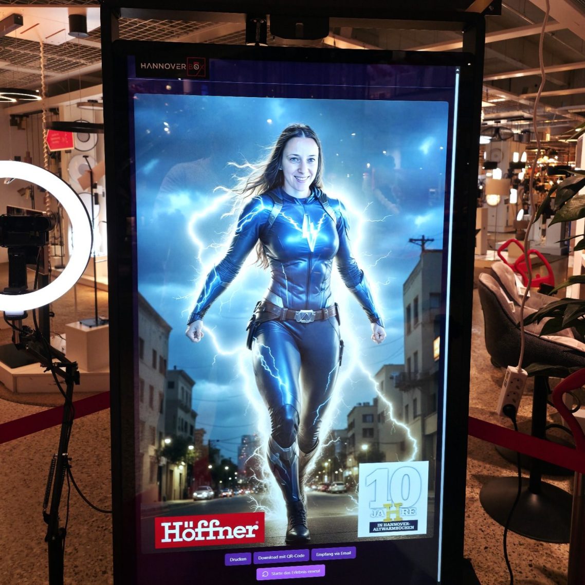 Machen Sie Ihre Firmenevents, Messen und öffentlichen Veranstaltungen zu einem unvergesslichen Erlebnis mit unserer innovativen KI-Fotobox. Diese hochmoderne Technologie ermöglicht es Ihnen, Ihre Gäste auf eine kreative Reise mitzunehmen und einzigartige Erinnerungen zu schaffen.