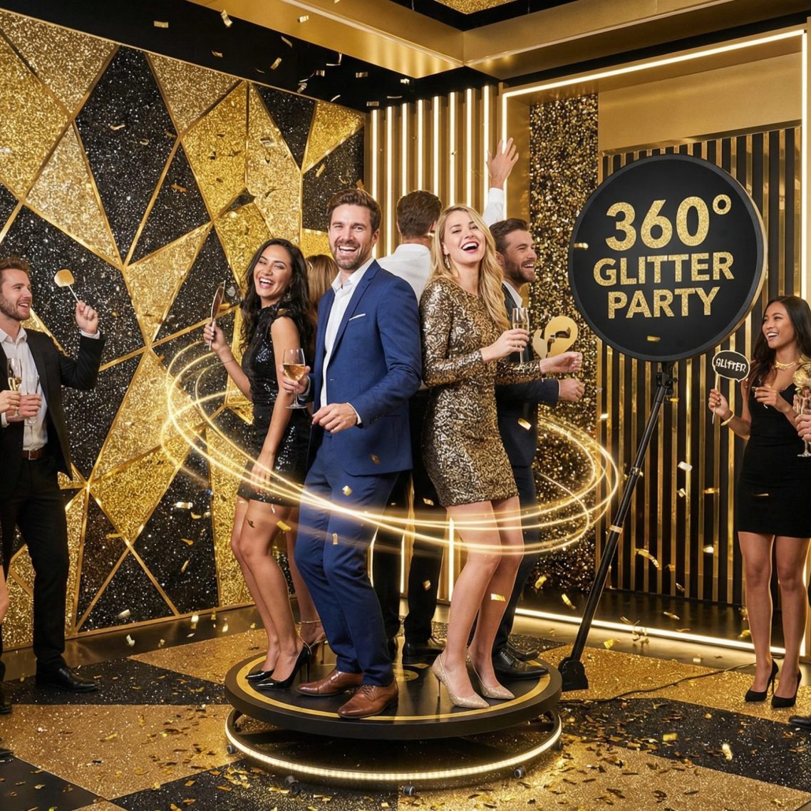 Eine 360-Grad-Videobox ist ein innovatives Event-Highlight, bei dem Gäste auf einer Plattform stehen und von einer rotierenden 4K-Kamera in spektakulären 360°-Videos aufgenommen werden.